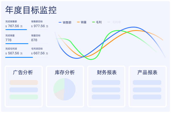 帮助管理者自动化处理多源数据,节省大量时间和成本,提供可靠的经营决策与进度跟进目标管理